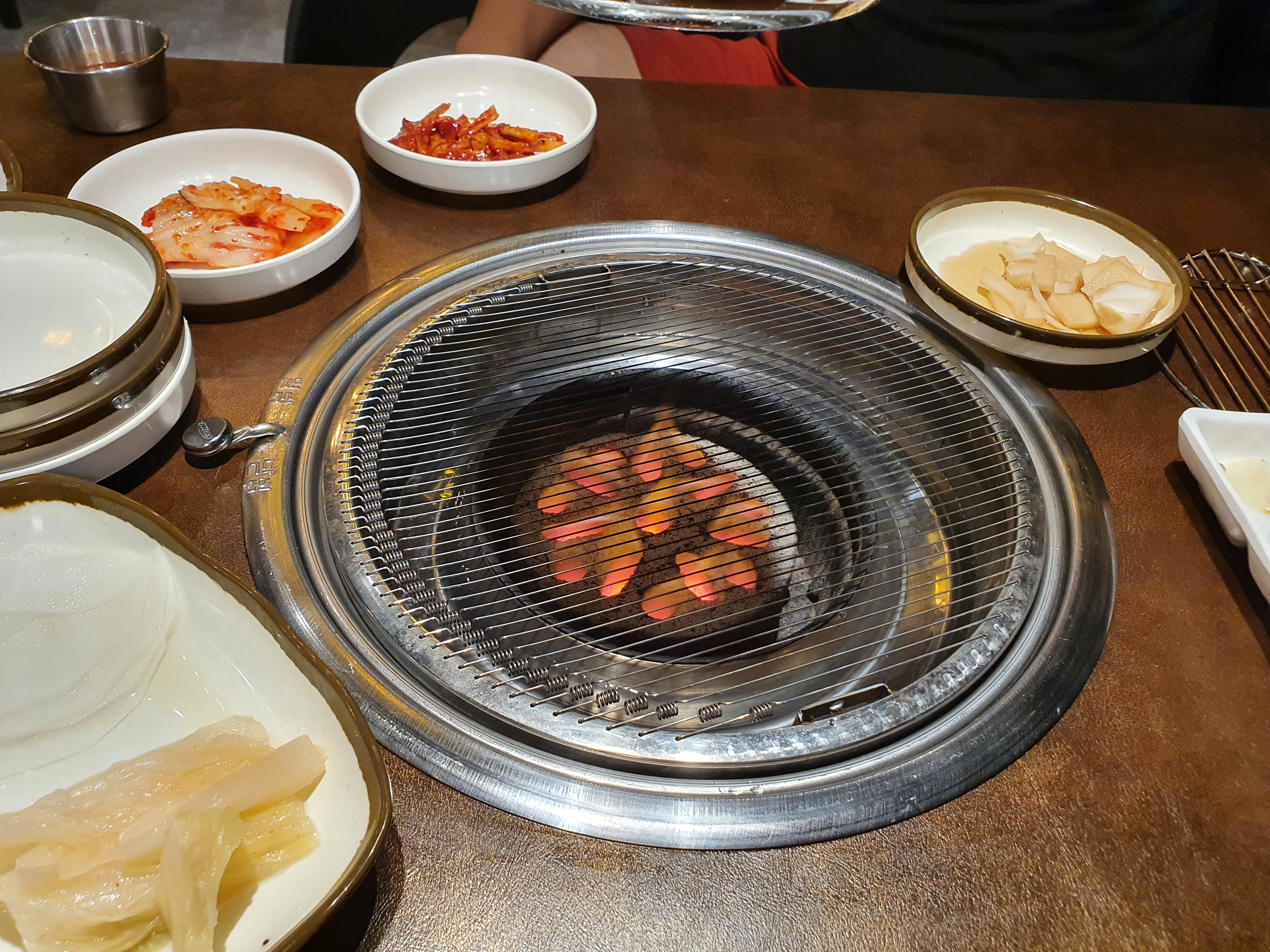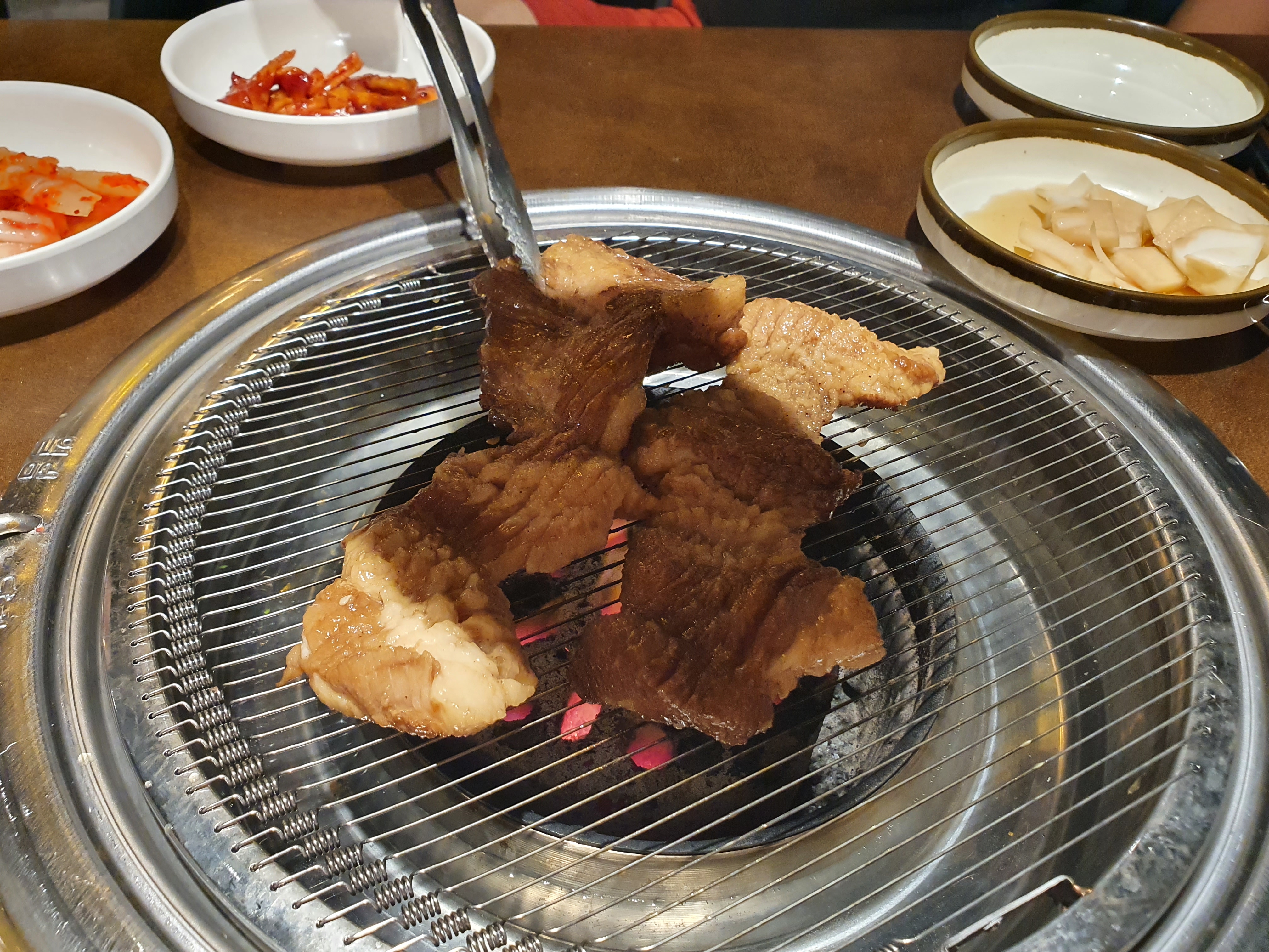 숯불이 특이하네요. 야자수 숯인거 같은데 화력이 강하진 않은듯해요.